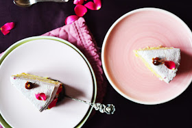 Boki tortu ozdobić pozostałymi pistacjami i płatkami jadalnych róż.